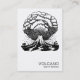 A business card template with an original pen and ink style illustration depicting an erupting volcano with billowing smoke, ash, balls of molten rock raining from the sky and rivers of hot lava. Also has some trees and a worried looking house.