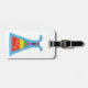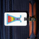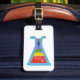 A funky rainbow vial design placed on a luggage tag.