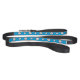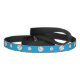 This dog leash has a sporty design featuring black and white volleyball balls in two sizes on a blue background color.