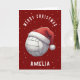 Volleyball Ball with Red Santa Hat Name Christmas Holiday Card