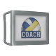 Volleyball Coach Belt Buckle features our original Volleyball painting with the word coach beneath in a color coordinated background cutting off the bottom of the ball. Makes a great gift for the coach of your team or your kid's Volleyball team. Coaches are your biggest fan, show them your appreciation with a gift just for them.