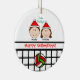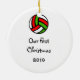 The family that volley's together stays together! Ornament features a volleyball and net with space on tape for custom sentiment. Above the net on this version is a couple graphic with custom fields for names underneath and family name above. Check our store for other family's with 2, 4, or 5 members. Create an ornament that will become a surefire favorite and perfect for any volleyball family!!