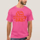 My 11 yo wore adult XL (5’7” 165#). The 8yo is small framed. She wore adult small and tied it in the back. Grandma wore adult large with long sleeve shirt underneath. Tall girl adult medium. Dark haired male adult large. Good quality dark Heather gray, Gildan brand shirt. -it was next up from basic choice and cost about $20 per shirt. Not too thick or thin. Washed and dried well, no major shrinkage. Not see-through. Can wear a bra under it fine. Screen print is just as shown and well done, front and back.