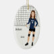 Celebrate the latest and best volleyball player with this keepsake ornament. Customize to fit your athlete's information. The name, team and player details are included as a template or delete the text if not needed. Background and text colors can be changed if desired. ** Requests for specific colors, uniform styles, skin tones, hair color and styles are welcome if you contact the designer - Night Owl's Menagerie, original: 2019.