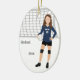 Volleyball Female Brown Hair In Dark Blue Black Ceramic Ornament
