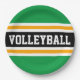 VOLLEYBALL Fun Bright Green Black Yellow Stripes Paper Plates