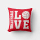 Red VOLLEYBALL LOVE Volleyball players cushion. Volleyball players will love this comfy volleyball cushion! This Volleyball cushion has a Love theme with the words VOLLEYBALL and LOVE in bold white letters. A volleyball serves for the letter O giving this volleyball design a real volleyball theme. On the back of this cushion is the same Volleyball Love design but printed as a fantastic all over patterned print. This comfy cushion looks great on any chair and will show everyone you have a ardent love for Volleyball. More fun volleyball themed gifts and volleyball merchandize available in the STAND UP AND CHEER store!