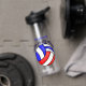 Volleyball Mom text curved around a red, white and blue volleyball. Mom's name is in matching royal blue in the middle. Good gift for Mother's Day.