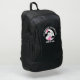 This custom volleyball backpack for girls or boys features the realistic image of a volleyball that has pink, black and white panels, upon which you can easily personalize the athlete's name and jersey number - customize with school or club name encircling the top of the volleyball graphic plus team mascot name beneath the graphic - by katz_d_zynes
