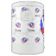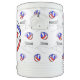 Pattern of a red, white and blue volleyball flying over a net with your team name.