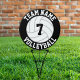 Create your own customized yard signs for volleyball players and teams! Just click to personalize the template, and type in your own volleyball team name and player jersey numbers. You can even change the background color - currently set on black - to your own team colors. These are a great way to show your support for your favorite volleyball team and players. Great for varsity high school volleyball teams.