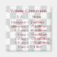 This magent is pretty and useful. It features a background with a grey and white checkered pattern. There is a volume conversion chart featuring U.S. volumes into Metric and back again. Perfect for someone with a cook book from another country or someone who has moved to another country!
