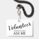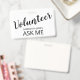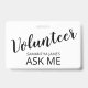 A modern volunteer ask me name badge for employees, volunteers, and event staff. Customize with your name. Trendy script type. Modern, trendy, simple all purpose badge.