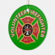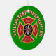This custom Christmas ornament is decorated on one side with the Volunteer Firefighter shield. The reverse side is decorated with an image of Santa Claus carrying his bag of goodies, and can be customized with names, dates, etc.