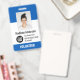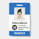Personalized Volunteer Name, Company logo, Photo, Barcode or Qr Code ID Badges with Clip or Lanyard featuring vibrant light blue and white colors.