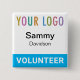 Easily personalize our square pin back name badge with your organization logo, volunteer name, or other custom text. It attaches with a safety pin back. Sold in sky blue and other colors (all colors are customizable). Our square buttons are 2 inch x 2 inch. Made in USA. No minimum order quantity and no setup fee.