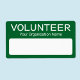 Personalize these green volunteer name tag stickers with your organization name, event name, or other custom text. These are self adhesive write-on name tags great for creating temporary name tags on demand. You can easily customize the colors, fonts, and design. You can hand-write or print the name onto the blank area (inkjet compatible and printed in full color on labels comparable to Avery® 6873 labels). Low minimum order quantity and no setup fee.