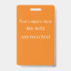 This identification badge for a volunteer worker or employee features a white background with a sample logo in the center. You can personalize the ID badge to display your own company, business or organization logo, or your own custom image. There is an area beneath the logo to print an employee name or other text. The title "VOLUNTEER" is printed along the right side over an orange banner. The back of the ID badge has an orange colored background with white text where you can include your company phone number or other information.
