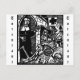Vom Totentanz Nun and Skeleton postcard: This vintage art is part of otto wirsching's dance of death/ Vom Totentanz Anno, circa 1915. This was the most significant of the many “death dances” produced during the First World War, He was greatly influenced by the Dance of death woodcuts of the old German masters of the Renaissance. His choice of images, however, is distinctly modern: in his the figure of Death, in the traditional form of a skeleton, confronts a variety of contemporary figures who will meet their doom as a result of the devastation of this new war. Overall Wirsching's, Vom Totentanz is a grim indictment of the evil of war and man’s innate inhumanity to man. By alluding so directly to the hallowed stylistic tradition of the German Totentanz, Wirsching’s philosophical message is all the more damning. this particular woodcut depicts a skeleton falling down outside a hospital with a nun in the doorway, perhaps baring death from the place, the skeletons jawbone lays in the street. A wounded solder looks on from the window.