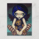 "Voodoo in Blue"! I love the expression on her face! You can see my ever-popular Voodoo Doll cradled on the lap of this sneering beauty! She hasn't poked any pins into this one.....yet! The blue highlights in this are just as vibrant - or actually even MORE vibrantly blue in real life too! Made from my own original acrylic painting.