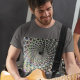 Asphalt Bella+Canvas fine jersey short-sleeve t-shirt with an image of a whirling fractal vortex of pastel green, pink, purple and yellow leaf spirals. See the entire Fractal Art Apparel collection in the APPAREL section.