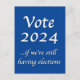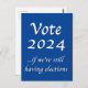 The American political landscape has changed dramatically over the last few elections. Our thriving democracy of one person one vote is being challenged by a minority rule concept of election results denial. It is critical that freedom loving Americans ensure their right to free and fair elections by voting in every election, local, state and federal, and insisting that the will of the people be accepted and not subverted. This statement of “Vote 2024… if we’re still having elections” is a bit tongue in cheek sarcastic humor, but carries the important message that our right to vote may be in peril.