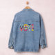 Get out the vote this election season with this modern and vibrant rainbow vote jean jacket. A wonderful gift for the activist or politico in your life.