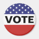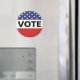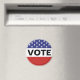 As a reminder to get out and vote, this magnet features the stars and colors of the red, white and blue American flag along with text which reads "Vote".