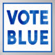 Encourage people to vote for democrats in elections by displaying a political poster with the words "VOTE BLUE" in a bold blue watercolor font on a white background for a modern typography design with a blue border. You can change the size of the print in the sidebar.