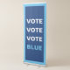 Vote Blue Democrat Selfie Background Backdrop vertical retractable banner. Text: Vote Vote Vote Blue (The word "vote" 3 times total, followed by the word "Blue"). White and blue all-caps writing on blue background. Customizable to your preferred colors.