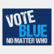 Vote Blue No Matter Who yard sign. Cool democratic party voter gift with a funny political quote. Democrat election humor about voting straight ticket democrat in an election. We need anyone but a Republican in office.