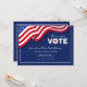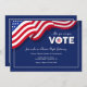 A patriotic invitation in blue with an American flag. Bold white letters read: VOTE! The card is easy to customize with your wording, font, font color and choice of six paper types. Not exactly what you're looking for? All our products can be custom designed to meet your needs at no extra charge. Simply contact us at askpixieprints@aol.com