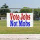 Vote Jobs Not Mobs with red blue text Banner