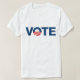 "VOTE" in blue lettering with the change symbol as the "O"