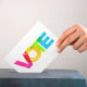 Encourage potential voters to cast their votes with this bright, eye-catching postcard. Bright and bold lettering in an overlapping risograph style spells out the one-word slogan on the front of this postcard. The text on the back can be customized with your own message, or delete the text to hand-write your own message on this postcard.