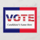 VOTE Text filled with Flag colors with a blue and red border. Add your candidate's name in the space provided. Distinctive.