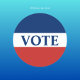 Vote is in blue text in the center. A blue stripe is at the top. A red stripe is at the bottom. A white stripe is in the middle. You can change the word if desired.