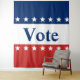 This red, white, and blue photo backdrop has the word 'Vote' in the center. The text is dark blue. The top stripe is blue and has white stars. The center stripe is white. The bottom stripe is red with white stars