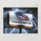 A large billboard with the message "Your Vote Matters" prominently displays an American flag illuminated against a dramatic backdrop of lightning and dark skies
