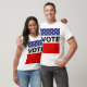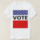 This vote t-shirt features white stars on blue, the word "Vote" and a red square below. Trendy for the voting season 2020.