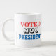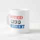 This design from our mug collection has Abraham Lincoln's stove-pipe hat and famous beard on the side of this jumbo mug, with the words 'VOTED MUG PRESIDENT' on the opposite side. You can customize it by uploading and placing the picture of your voted one between the hat and beard, you can drag the layer at the bottom of the other layers situated on your right to place picture behind hat image. Makes an 'executive' gift for Presidents' Day!