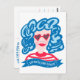 Voting is Girl Power! This cute postcard featuring an original illustration of a darling blue haired lady with red & white striped shirt and banner that reads Voting Is Girl Power. Use your power and vote. Original artwork by Debbie at The Spotted Olive. © 2020-Present | All Rights Reserved.