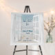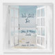 White open window with sheer curtains and ocean watercolor with starfish for wedding vow renewal reception
