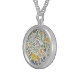 I chose gold plated so that the metal would not react with my skin oils and perspiration. But, I changed the necklace from the gold plated one to a sterling silver. My skin cells will tarnish the silver. But it will not look as bad if some portion of the gold plated necklace somehow became compromised. Zazzle did a find job turning the picture into a pendant for me. As you can see, the colors and the printing of the final product, match the preview. The picture I took is not very clear. But I am pleased with the product I received.