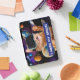 I was super excited when I got my cover in. It is attached by a magnet across the edge. I don’t think it will be very protective but it is very cute. I’m going to keep my iPad in a sleeve and use this face cover while I have it out. It folds to create a tilt for better viewing and to keep the iPad at a slight angle for typing. The colors are bright and it is fun. I’ve really enjoyed it. The personalization looks like amazing. It is the same color as the picture and is the same brightness. Well done! Very nice.