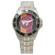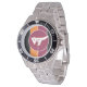 Has heft and feel of expensive stainless steel quartz watches. Good band with safety catch. I removed links, which is easy because engraved arrows show direction to push the linking pins. As always by this seller, the image (a railroad logo) is a perfect reproduction of my emailed image, and is precisely spaced and aligned.
