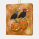 A pair of North American vultures, the Turkey Vulture and the Black Vulture, perch upon a pair of spooky carved pumpkins, aka jack'o-lanterns. Get ready for the spooky season with TUVU and BLVU!