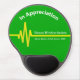 The plastic backing is nice and sturdy. The grippy pads underneath keep the mouse pad where I put it on my table. The pad the mouse sits on is cut well to fit the backing. The wrist pad is perfectly soft, supportive, and thick. I'm left-handed, and this mouse pad works just as well for me as it does for my right-handed friends. I'm the designer of HippieClecticHope products. I'm blown away by how well my intricate fractals turn out on the tangible items in the Zazzle Marketplace. This particular mouse pad ***appears*** like a 3D object... A mathematically-engineered rainbow black opal, inlaid under transparent fabric...