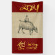 Wash painting style of a water buffalo with a child, original painting by RB on Vietnamese handmade textured paper (image printed)+ large golden "2021", "Year of the Ox" + Vietnamese wishes. Design on vertical banner (3'x5') on dark red background. Available with other original paintings. Matching greeting card, holidays postcard, invitations, craft supplies, party supplies (soon). Perfect for Chinese and Vietnamese New Year of the Ox 2021.