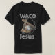 carrying the cross on his shoulder, suggesting a scene from the Christian narrative of the Stations of the Cross or the Passion of Christ. He is shown with brown hair, in a white robe, bearing the weight of the cross. Above and below the central image are the words "WACO" and "Jesus" respectively, rendered in large, bold white letters that stand out against the black background.